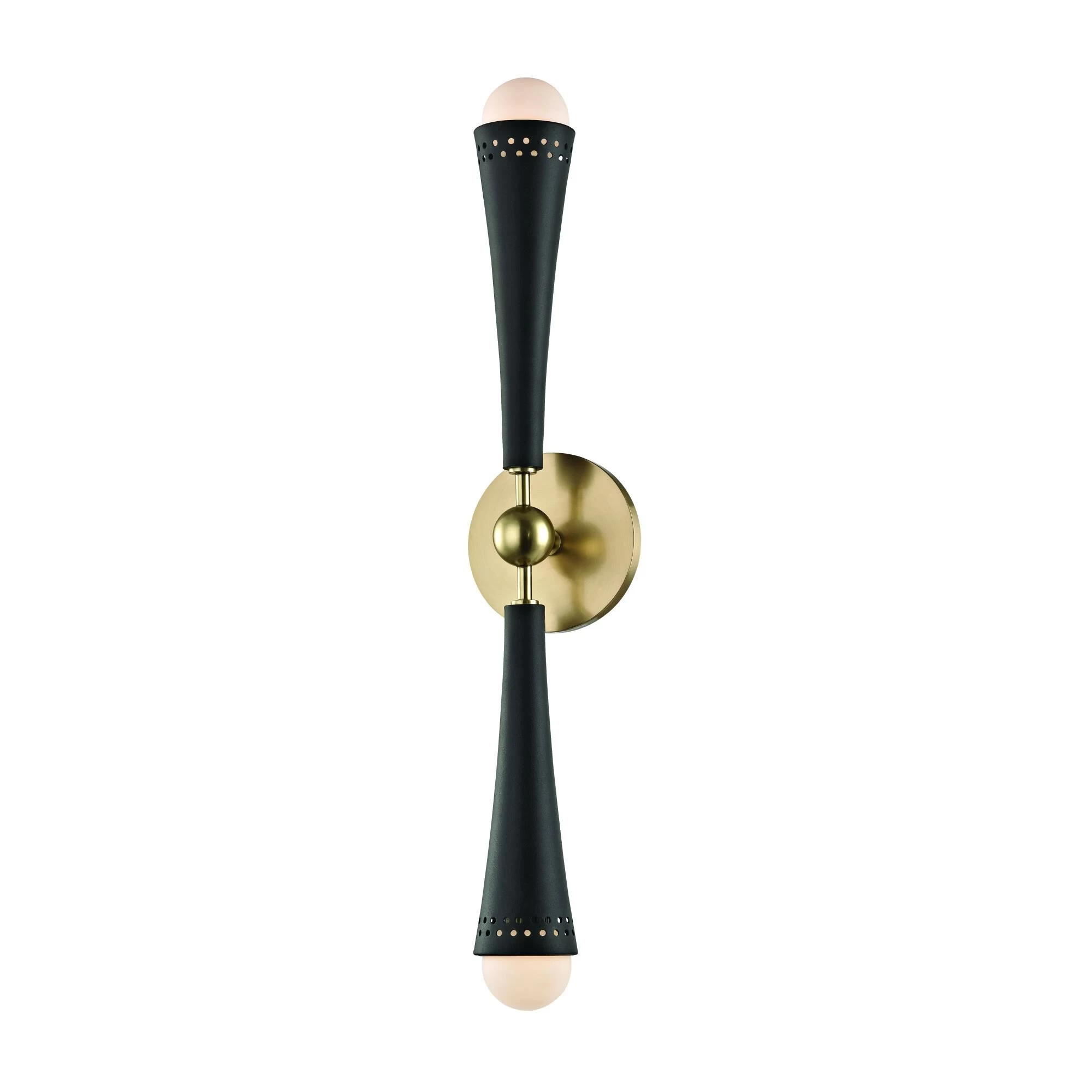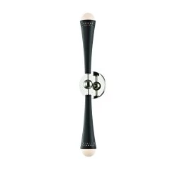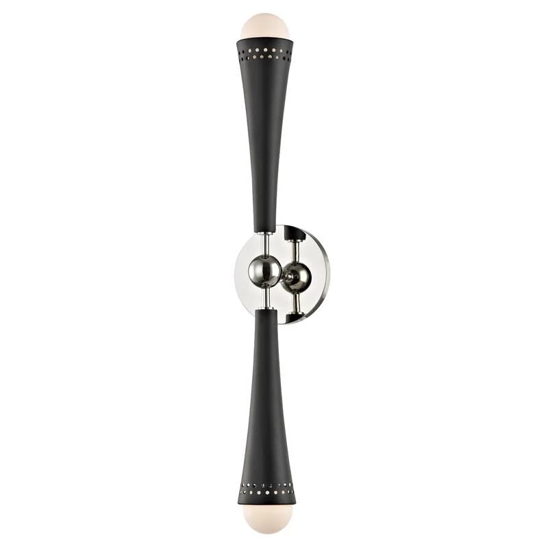 Evocations of geometry, nature, and organic chemistry all ring off our Tupelo family. LED light sources glow from within white opal diffusers designed to look snugly wedged into Tupelos black cones. A double-row of perforation allows this light to shine through the holes in the textural black metal. On both an engineering and design front, Tupelos a contemporary piece.