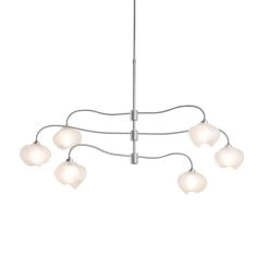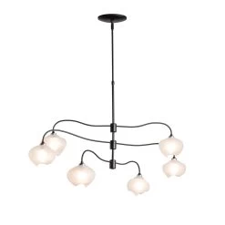 The 2021 Ume Collection includes three pendants offering a new, exquisite glass option that is frosted internally, yet glossy on the outside in an organic shape similar to that of a blossoming plum. Delicate and unique, this one of a kind glass option is only available with the Ume Collection. This Ume 6-Light Pendant features 3 fixed tiers of light. Available with this 2021 frosted glass, or with the 2021 “thumbprint” glass shades in clear or cool grey. All Hubbardton Forge products are hand-crafted to last one at a time in Vermont and backed by a Lifetime Limited Warranty.