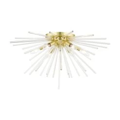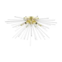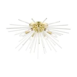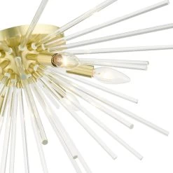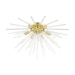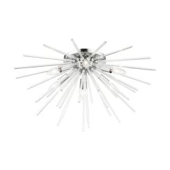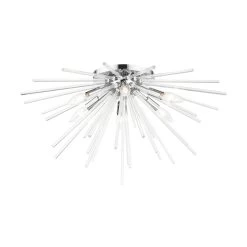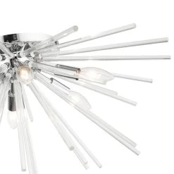 The Utopia six light flush mount fixture will become an attention-grabbing feature in your modern home decor. The polished chrome finish graces the design with elegance and charm, providing a timeless and glamorous quality to any interior. The clear crystal rods give the pendant chandelier a sleek and attractive appearance.