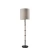 The Watson Floor Lamp embraces two bold trends: mixed materials and exposed cords. A white marble base supports a vintage brass adjustable shade attached to a bronzed steel rod. The exposed black cloth cord can be artfully wrapped around the rod or left to simply hang straight. Marble may vary. Height adjusts from 60 to 68.5 inches and the depth adjusts from 21.5 to 25.5 inches.