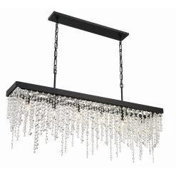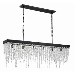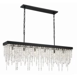 Layers of multi sized faceted cut crystal strands are arranged on a simple, clean frame creating optimal sparkle. A perfect compliment to any space, this chandelier is sure to amaze. The Winham fixture is a sparkling masterpiece when placed as a focal point in a bedroom, dining room or living room.