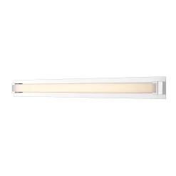 With a classic look blending modern with Art Deco inspiration, this one-light vanity is a wise choice for a stylish bath space. Its brushed nickel steel frame hosts a cool white diffuser, and LED technology delivers energy savings and convenience.